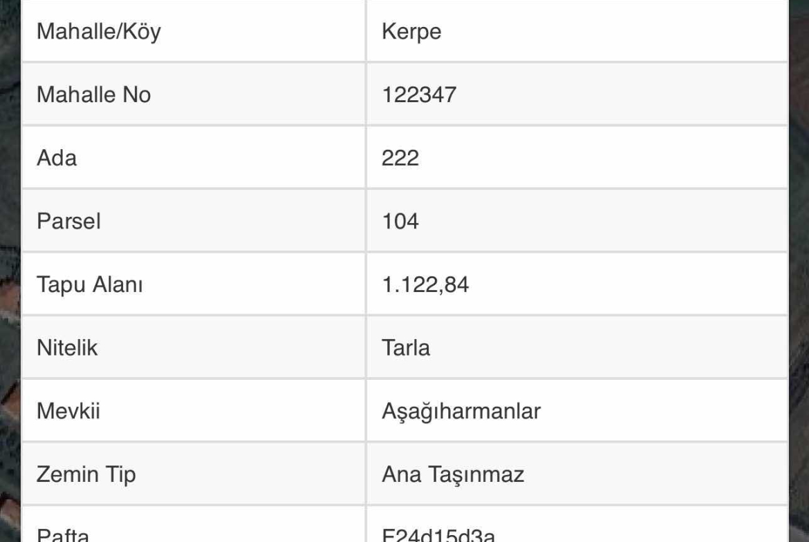 *KERPE KÖYİÇİ’NDE YATIRIMLIK FIRSAT!* Doğayla iç içe, denize yakın, huzurlu bir yaşam ya da kazançlı bir yatırım arayanlar için *Kandıra Kerpe Köyiçi* mevkiinde *1.122 m²* büyüklüğünde kaçırılmayacak bir tarla sizleri bekliyor! ✅ *Konum:* Kocaeli / Kandıra / Kerpe – Köyiçi ✅ *Ada/Parsel:* 222 Ada / 104 Parsel ✅ *Yüzölçüm:* 1.122 m² ✅ *Nitelik:* Tarla Denize ve Kerpe merkezine çok yakın konum Temiz havası, doğal güzellikleri ve gelişmekte olan bölge yapısıyla öne çıkan lokasyon Orman ve doğa içinde sessiz, sakin bir yaşam için uygun İleriye dönük değer artışı yüksek yatırım fırsatı İster hafta sonu kaçamağı için bir hobi bahçesi, ister geleceğe yönelik kazançlı bir yatırım düşünün… Bu tarla tam size göre! *Detaylı bilgi ve yer gösterimi için iletişime geçiniz.* Derya Sıldıroğlu RE/MAX PİRAMİT 0532 716 44 55